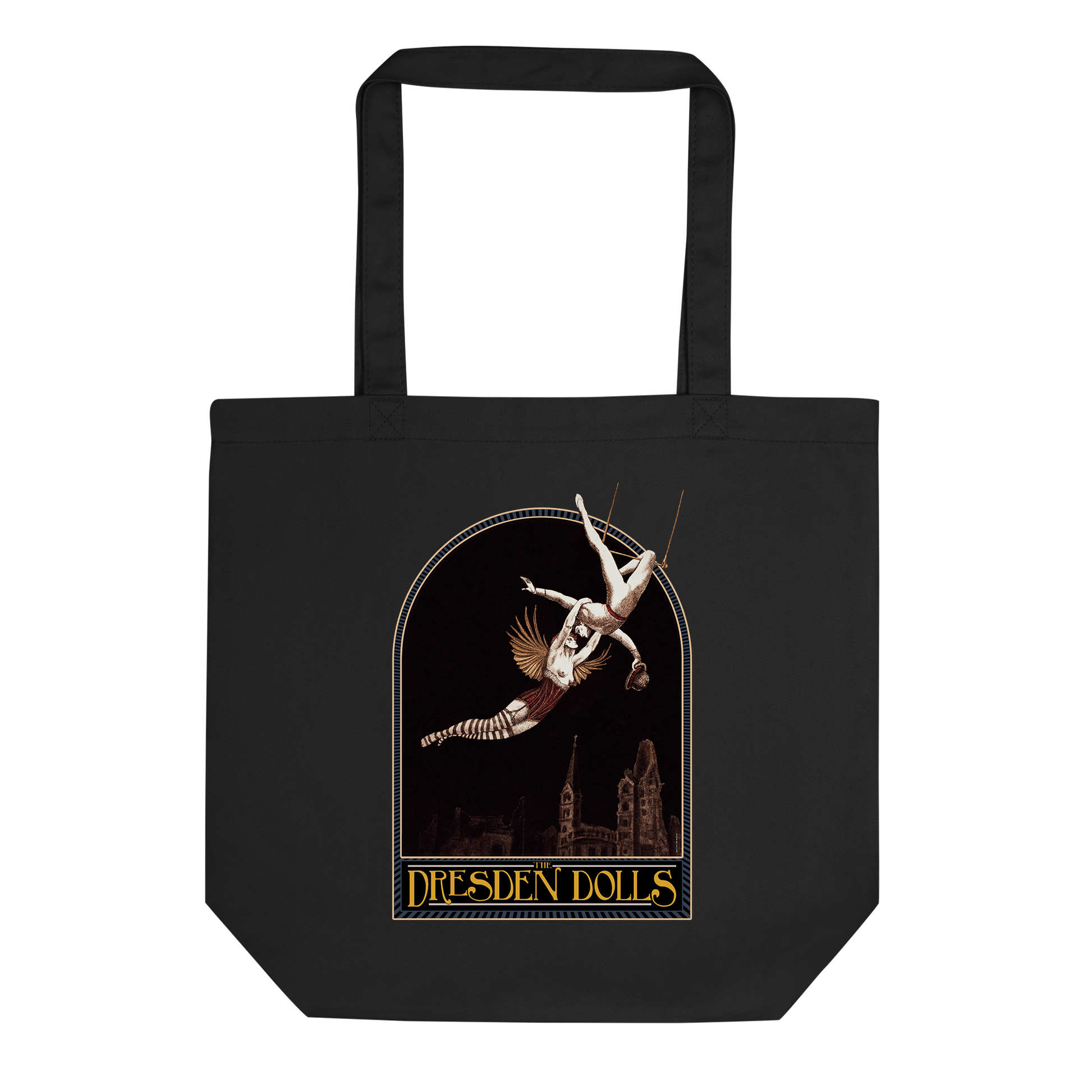 The official Dresden Dolls Reunited design printed on the front of a black tote.