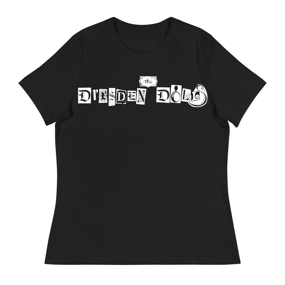 The original, vintage Dresden Dolls ransom logo lives again! Printed on a 100% combed and ring-spun cotton black tee, the design was printed using discharge printing for an extra soft feel. This product was produced ethically and sustainably with care given to the environment and workers alike.